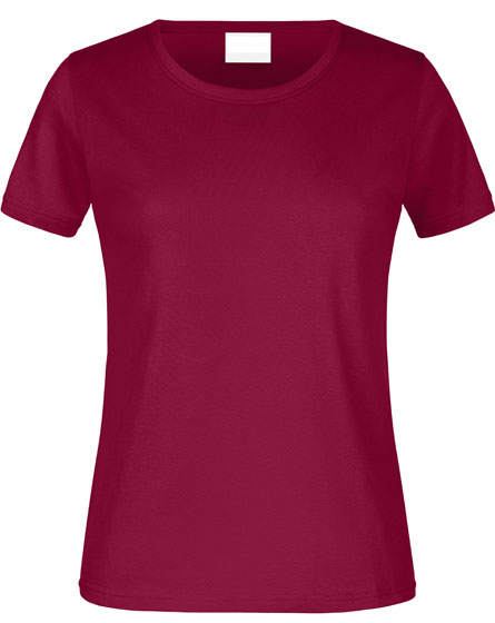Damen T-Shirt, tailliert, 1x1 gerippter Rundhals, doppellagig. Nacken und Schulterband mit Seitennähten.