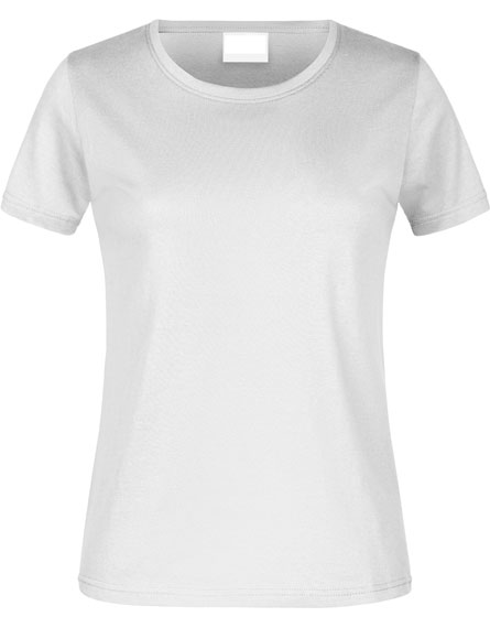 Damen T-Shirt, tailliert, 1x1 gerippter Rundhals, doppellagig. Nacken und Schulterband mit Seitennähten.