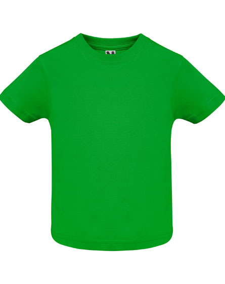 Baby T-Shirt aus extra feingestricktem Material. Rundhals mit Druckknöpfen auf der linken Schulter in den Größen von 6 - 24 Monaten. Seitennähte.